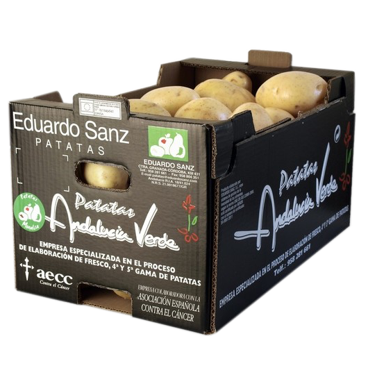 El producto en caja o a granel es el más polivalente de todos. Servido en cajas abiertas de 17,5Kg aproximados sirven tanto para la venta minorista como mayorista y presentan los productos sin ningún retoque o banda que los oculte.