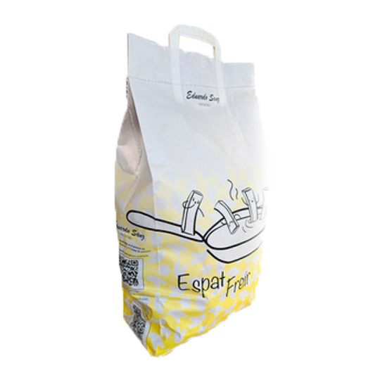 ENVASADO –En bolsa de papel anti-humedad de alta calidad con fuelle y asa. En marca Espat.